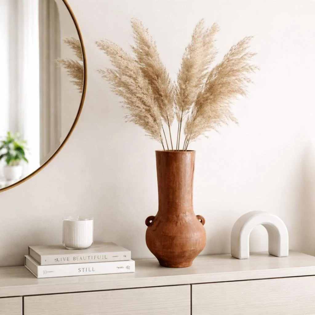 This intentional, uneven texture highlights the handmade process ,giving each piece a unique, sun-baked character that feels both earthy and sculptural. Perfect as a decorative object or styled with dried stems for a warm, minimal interior.
