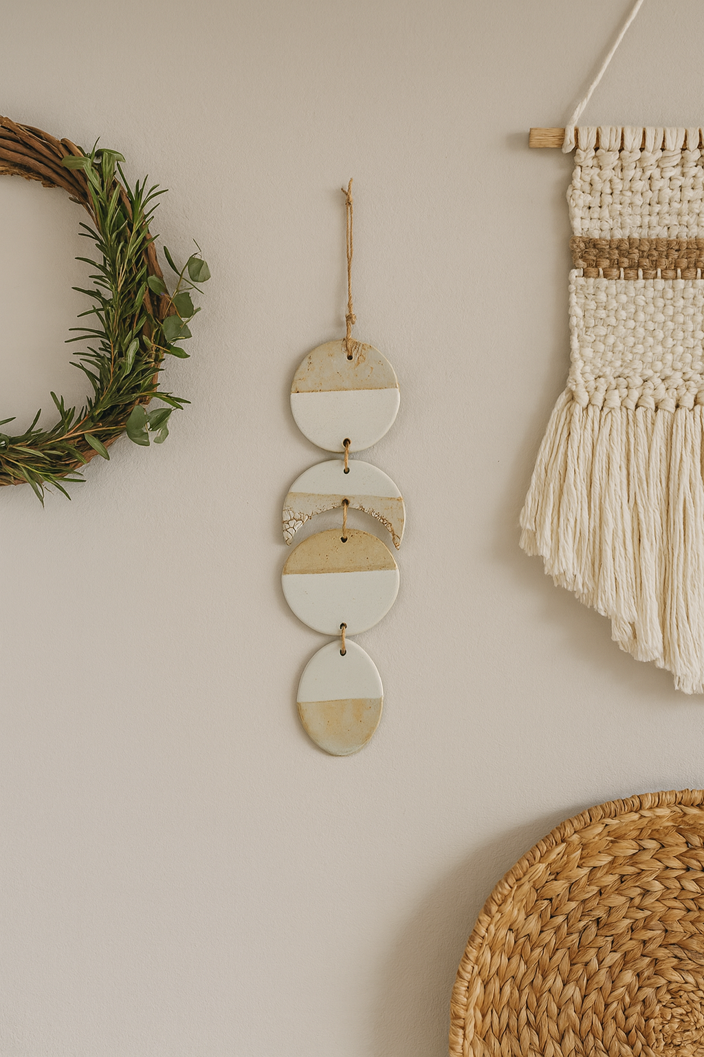 The Silent Night Bells embody the calm and warmth of the season. Each piece is hand-built from stoneware clay and finished in a smooth matte white glaze that softly reflects candlelight. Their simple, conical forms and natural jute cords give them a timeless, organic elegance — perfect for bringing a touch of serenity to your holiday décor.